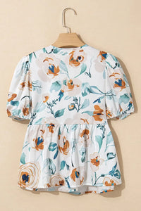 Floral Print Puff Sleeve V Neck Babydoll Blouse