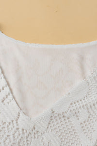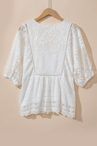 Lace Crochet Hollowed Scallop Hem V Neck Blouse