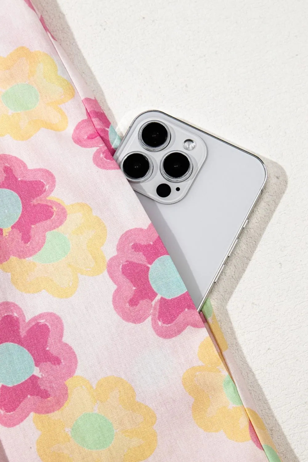 Floral Square Neck Puff Sleeve Pleated Flared Midi Dress