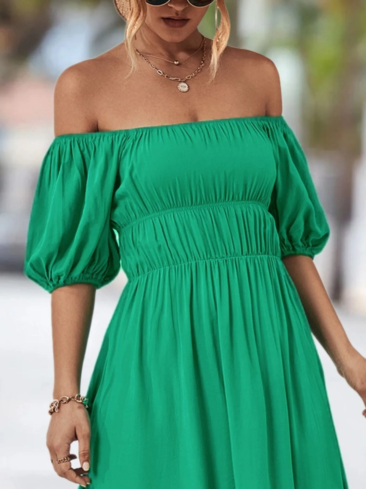 Off-Shoulder Puff Sleeve Mini Dress