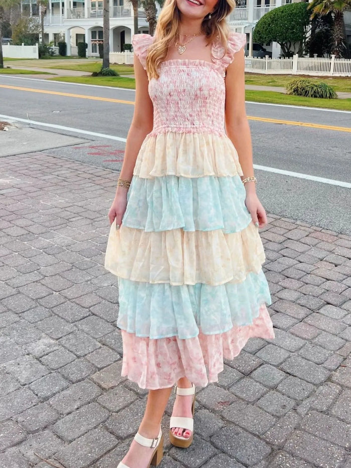 Ruffled Sleeveless Tiered Maxi Dress with Pockets