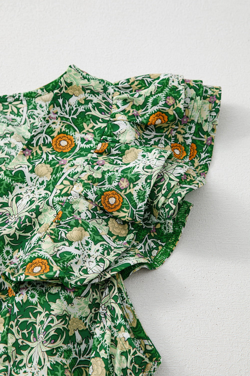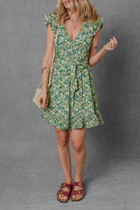 Floral Flutter Sleeve V-Neck Sashed Ruffled Mini Dress