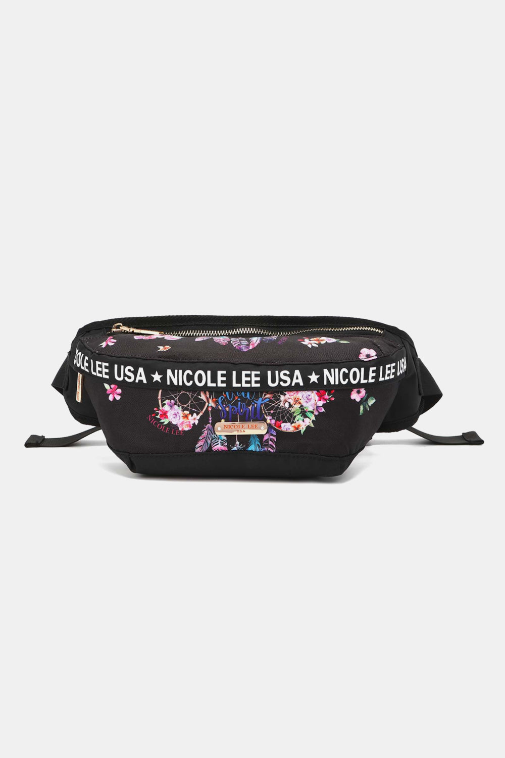 Made with smooth and textured vegan leather, the exterior exudes sophistication and sustainability. The adjustable and removable vegan leather belt strap allows you to wear it around your waist or across your body for versatile styling options. The fanny pack features a convenient front pouch and a secure back zip pouch, providing ample space to keep your essentials organized. Inside, you'll find Nicole Lee's premium print lining, adding a touch of luxury to the pack. Plus, the interior back zip pocket ensures you can keep valuables safe.